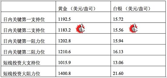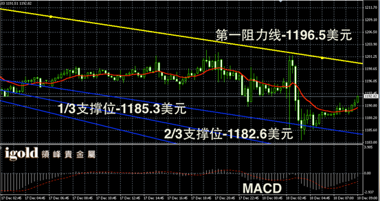 技术回顾:昨晚的评论中,我们指出美联储会有更多的官员偏于提前升息,且提醒投资者留意1193美元附近支撑,跌破或继续下行,这些判断与昨晚的走势相符。