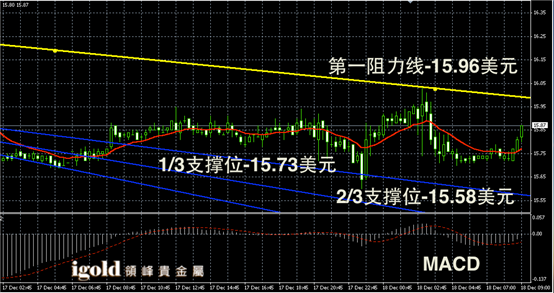 白银阴阳烛录得整体仍然在区间中位运行,后期阳烛回升,短线MACD显示呈中性,白银价格或不断持稳15.9美元附近。