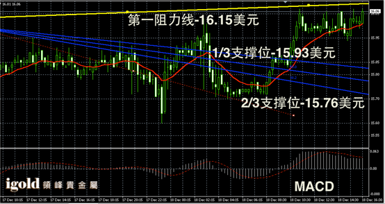 白银阴阳烛录得上扬后,柱体收平,整体处于红色日均线中位,短线MACD显示多头主导,白银价格或不断持稳16美元线,随后或向16.1美元附近攀升。
