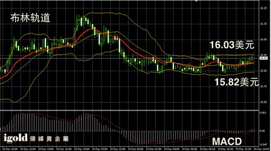 白银阴阳烛录得后期阳烛小幅上探,不过柱体聚焦明显,布林轨道区间收平,短线MACD显示呈中性,白银价格下午或在15.9美元附近运行,午后或小幅上探16美元。