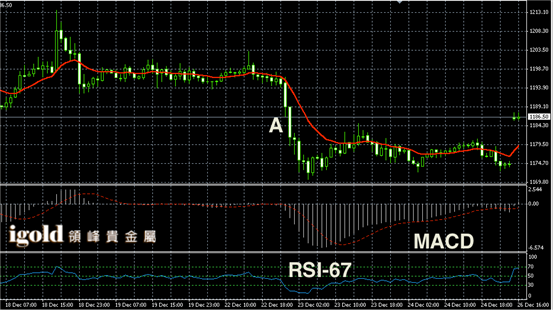 黄金日线跳涨后,来到了阴烛A的运行区间,日线MACD显示呈中性,黄金价格晚上或在阴烛A的区间,即1182-1189美元区间运行,小时线RSI录得67,已经在高位,预期1189美元阻力较大。
