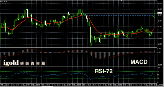 由于美国时段,多数人还在圣诞假期中,所以预期晚上贵金属市场不会有太大的波幅。金银价格区间突破后,或主要进行阶段性持稳。黄金开盘的反弹幅度适中,白银价格的反弹形成了典型的U型反弹,不过有所超买,预期白银价格会小幅回调。