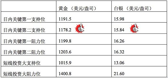 在支持位和阻力位上,可参考以下数据