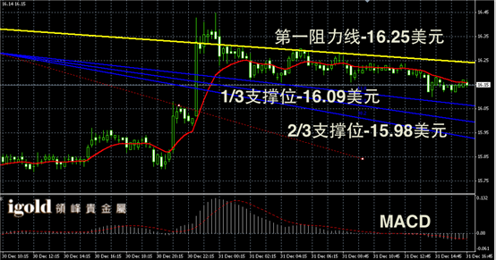 白银阴阳烛录得柱体较短,聚焦在红色日均线中位,短线MACD显示呈中性,白银价格晚上或浮动在16.15美元附近,低位支撑若跌破16.1美元,或继续下探至16.04美元附近。