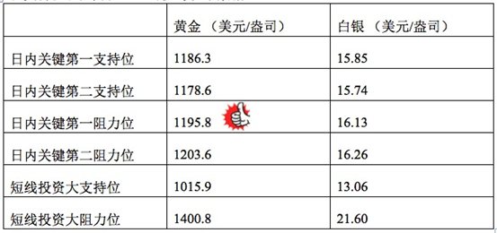 在支持位和阻力位上,可参考以下数据