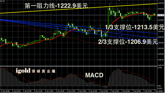 技术回顾:昨晚的评论中,我们指出市场会首先回落至1206美元附近,随后建议投资者关注1211美元,指出市场若突破会继续攀升。昨晚至今天凌晨的走势验证了我们的判断。