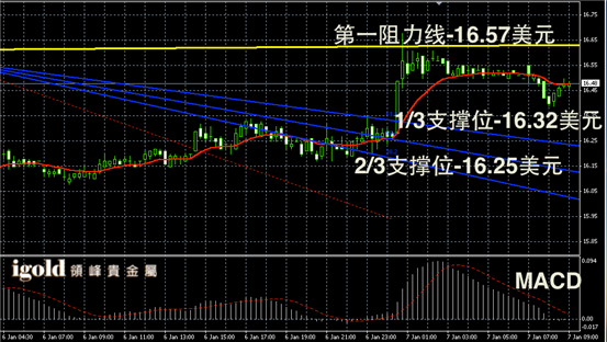 白银阴阳烛录得后期阴烛增多,末端柱体处于红色日均线中位,短线MACD显示呈中性,白银价格短线或小幅16.45美元附近,随后则偏于在16.5美元附近横盘运行。