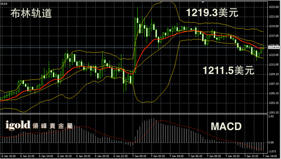 黄金阴阳烛录得后期小幅回落,布林轨道区间下探,短线MACD显示弱势空头主导,午后金价或在1215美元附近持稳,并偏于向1217美元附近上探。低位支撑可首先参考1211美元,一旦跌破或继续大幅回落。