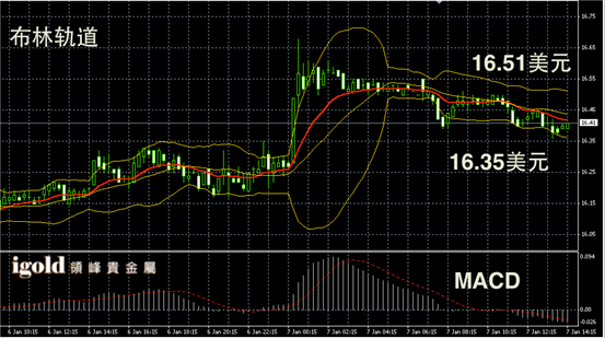 白银阴阳烛录得后期低于红色日均线中位,短线MACD显示弱势空头主导,白银价格短线或向16.45美元附近回调。