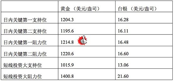 在支持位和阻力位上,可参考以下数据