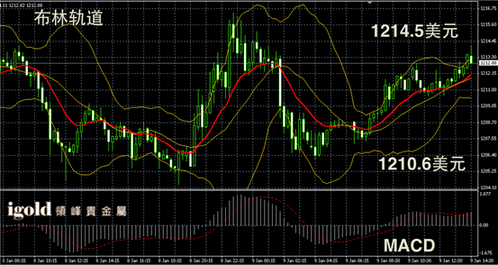 技术回顾:早评中,我们预测金价会向1213美元附近攀升,上午的走势验证了我们的判断。