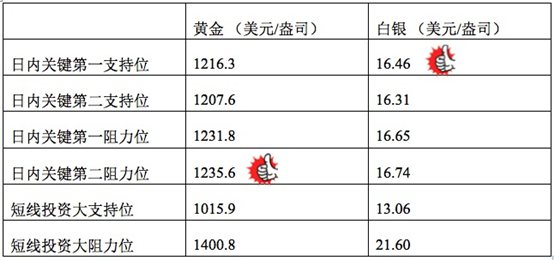 在支持位和阻力位上,可参考以下数据