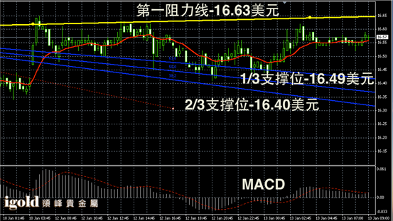 白银阴阳烛录得聚焦明显,整体处于红色日均线中位,短线MACD显示弱势多头主导,白银价格短线或向16.6美元附近攀升。