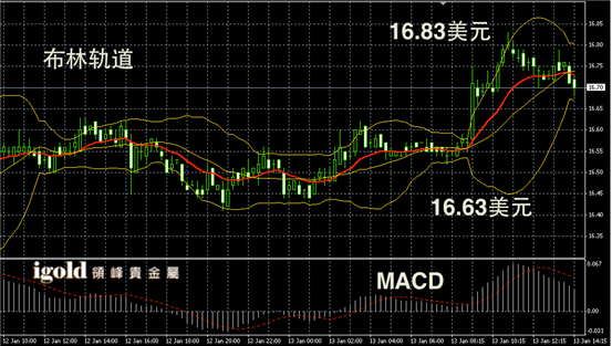 白银阴阳烛录得反弹后持平,后期柱体收短,布林轨道区间收平,白银价格或在16.7美元附近盘整,建议以16.7美元为参考线,跌破或向16.65美元附近滑落,持稳则偏于回升至16.75美元附近。