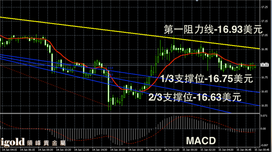 白银阴阳烛录得聚焦明显,整体处于红色日均线中位,短线MACD显示弱势空头主导,白银价格或先小幅回调至16.75美元附近,持稳则偏于再次回升至16.83美元附近。跌破或继续向16.64美元附近滑落。