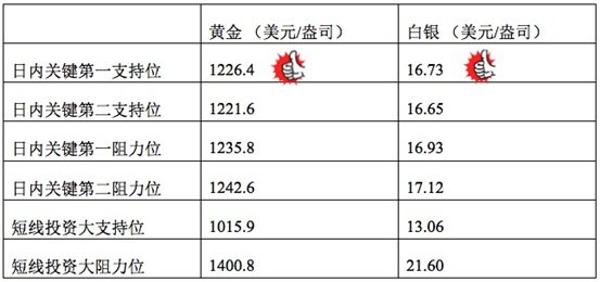 黄金日线走势末端阴烛变长,RSI则录得58小幅下探;小时线上则显示弱势偏空,黄金价格下午密切留意1225.4美元附近支撑,一旦失守,或向1221美元附近滑落;白银日线阴烛回落至红色日均线中位,小时线上回调幅度加大,午后或向16.6美元附近回调。