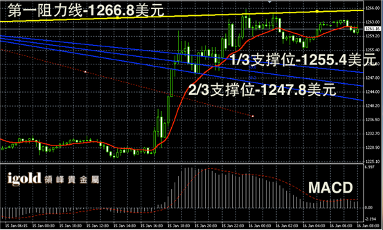 黄金阴阳烛录得末端阴烛回落,柱体收短,短线MACD显示弱势多头主导,黄金价格上午或小幅回调,短线偏于向1256美元附近靠拢。