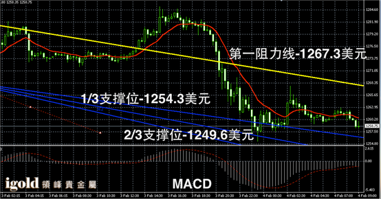 黄金阴阳烛短线录得阴烛增多,末端柱体低于红色日均线,短线MACD显示弱势空头主导,上午金价或整体持稳1256美元附近,随后偏于向1260美元附近回升,短线运行区间可参考1254-1263美元区间。但是,投资者需要密切留意1251美元附近支撑,一旦跌破市场或大幅回落至1235美元附近。