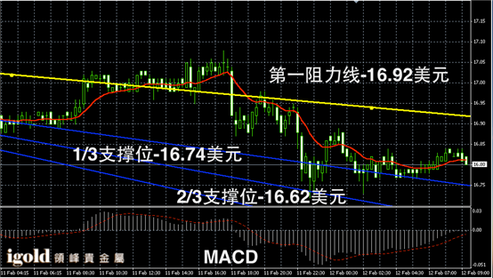 白银阴阳烛录得柱体聚焦明显,整体处于红色日均线中位,短线MACD显示呈中性,白银价格或在16.8美元附近横盘运行,并偏于小幅上探16.9美元附近。