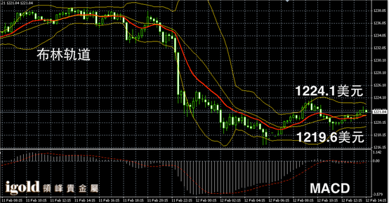 技术回顾:上午的评论中,我们指出金价在突破1224美元前,或再次回落至1221美元附近运行,这一判断与上午的走势相符。