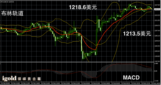 黄金阴阳烛录得柱体收短,整体色日均线中位,短线MACD示弱,黄金价格午后或持1215美元附近震,高位若突破1217美元,或继续小幅上探,低位支撑可分段参考1213美元和1210美元附近。
