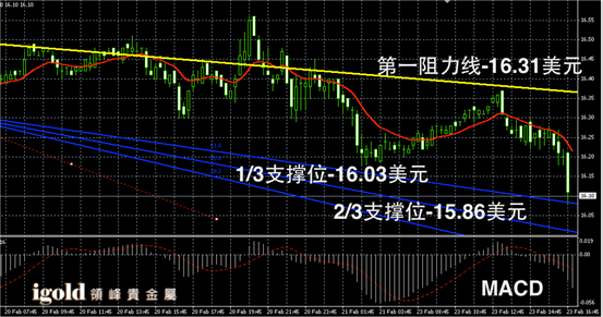 白银阴阳烛录得阴烛增多,短线MACD显示空头主导,白银价格晚上或小幅下探16.1美元附近,低位支撑建议密切留意16美元附近,一旦跌破空头或继续大幅增加,高位突破16.2美元前,不建议大幅看多。
