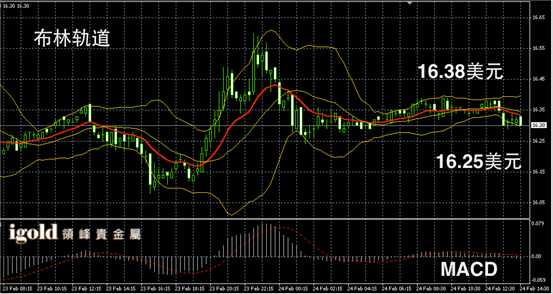 白银阴阳烛录得末端阴烛增多,且小幅低于红色日均线,短线MACD显示呈中性,白银价格午后或继续小幅下探,低位支撑可分阶段参考16.25和16.15美元。高位若突破16.4美元,可小幅看涨。