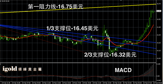 白银阴阳烛录得后期阳烛大幅增多,且高于红色日均线,短线MACD显示多头主导,白银价格上午或偏于回调至16.55美元附近,随后进行横盘运行,多头若突破16.75美元,涨幅或进一步扩大。