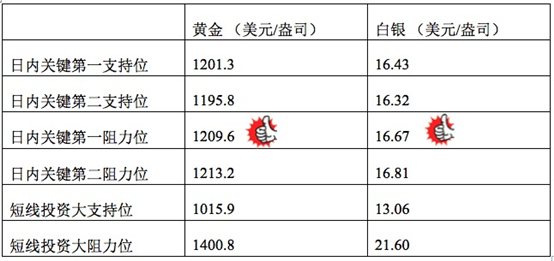 技术回顾:早评中,我们指出金价一旦突破1207美元,会继续上升至1210美元,这一判断与上午的走势完全相符。