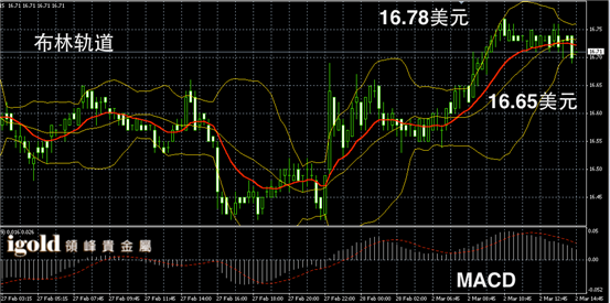 阴阳烛录得后期回落趋势较为,柱体色日均线中位,短线MACD示弱,白价格或在16.7美元附近整,运行区可参考16.65-16.75美元,高低若有突破,可顺势看跌。