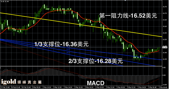阴阳烛录V型反弹趋势,后期阳增多,短线MACD示呈中性,白价格上午或向16.5美元附近反,低位支撑可首先参考16.4美元附近。