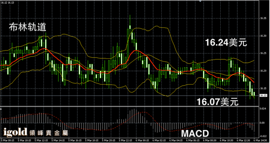 阴阳烛录得后期阴增多,且低于色日均线,布林得区小幅下探,短线MACD示弱,白价格午后或继续小幅下探至16.1美元附近,低位支撑若跌破16.05美元,空大,高位重回16.25美元前不建大幅做多。