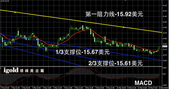 白银线录得阳不明且阴烛还在增加,RSI录32,暂时,小时线得阳增加,但仍然小幅低于色日均线白银价格日线或向15.85美元附近回升