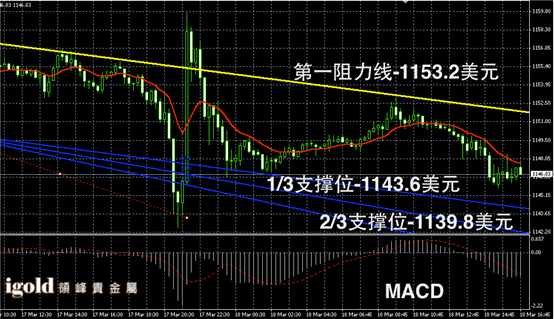 技术回顾:午评中,我们预测市场或继续偏空运行,且给出了黄金在1146美元附近的低位支撑,这一预测与下午的走势完全一致。