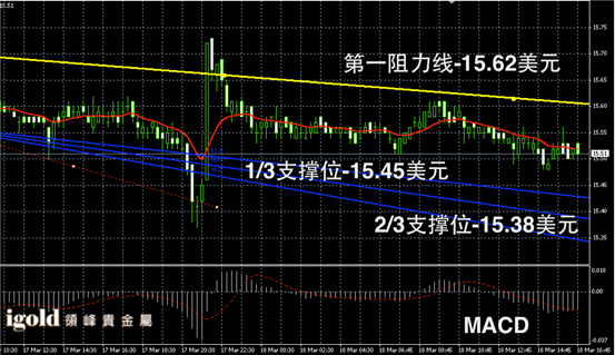 白银阴阳烛录得阴烛小幅增多,短线MACD显示空头主导,白银价格建议留意15.45美元附近支撑,若跌破空头或增加,市场突破15.6美元前或很难反弹。