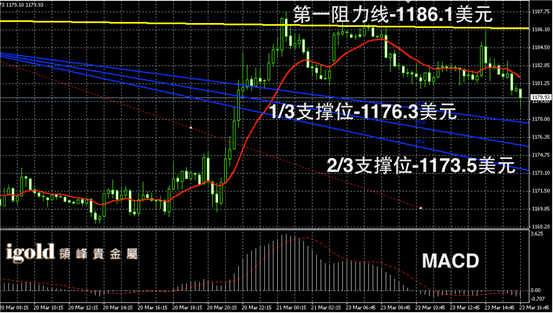 黄金阴阳烛录得短线回落,末端低于色日均线,短线MACD示弱偏空,黄金价格晚上8点左右或再次承,建密切留意1178美元附近支撑,若跌破空大至1174美元附近,高位多信号可首先参考1183美元附近。