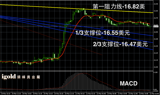 阴阳烛录得柱体小幅低于色日均线,短线MACD示弱偏空,白价格或在16.6美元附近偏空震,晚上8点前后留意16.55美元附近支撑,高位多信号可参考16.75美元附近。