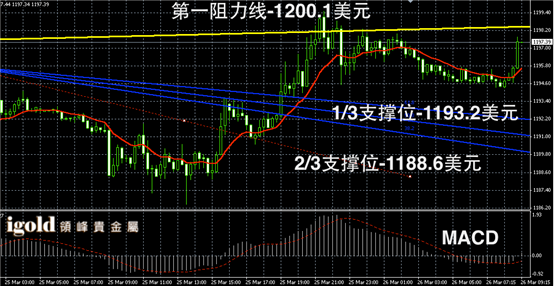 黄金阴阳烛录得反后,末端小幅回,整体于波段运行,短线MACD示呈中性,黄金价格上午或在1195-1198美元区内波,高低若有突破,可顺势小幅看看跌。