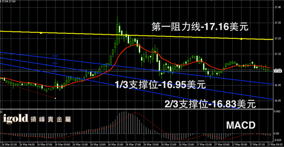 阴阳烛录柱体聚焦明,短线MACD示呈中性,白价格或在17美元附近徘徊,高位突破17.1美元前不建大幅做多。