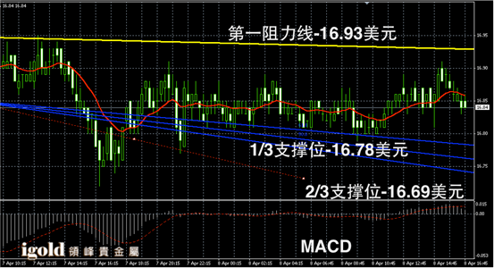 白银阴阳烛录得柱体整体聚焦在红色日均线中位,短线MACD显示呈中性,白银价格或在16.8美元附近徘徊,晚上8点前后振幅或有所扩大,运行区间若突破16.75-16.9美元区间,可小幅看涨看跌。