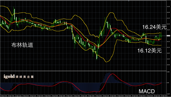 白银阴阳烛录得整体处于红色日均线中位,布林轨道区间收平,短线MACD显示呈中性,白银价格短线或在16.2美元附近震荡,下午4点振幅或有扩大,高低多空信号可参考布林轨道区间线。