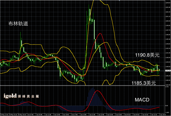技术回顾:早评中,我们指出贵金属市场振幅会收窄,且预测黄金价格会在1187美元附近震荡,上午的走势验证了我们的判断。