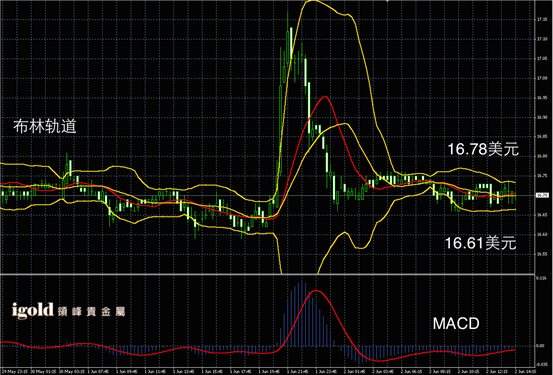 白银阴阳烛录得柱体较短,整体处于红色日均线中位,短线MACD显示呈中性,白银价格午后或小幅上探16.75美元附近,下午4点左右振幅或有扩大。