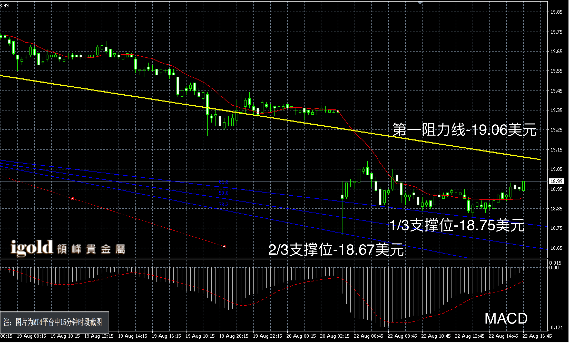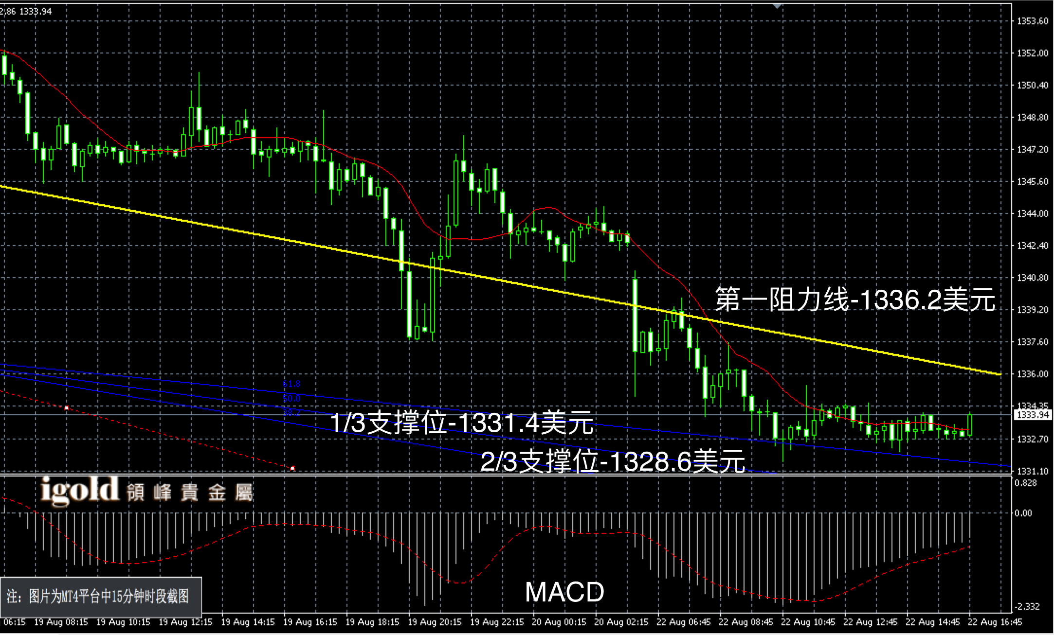 领峰贵金属 22-08-2016 晚评 欧盘低位持稳 晚上留意支撑
