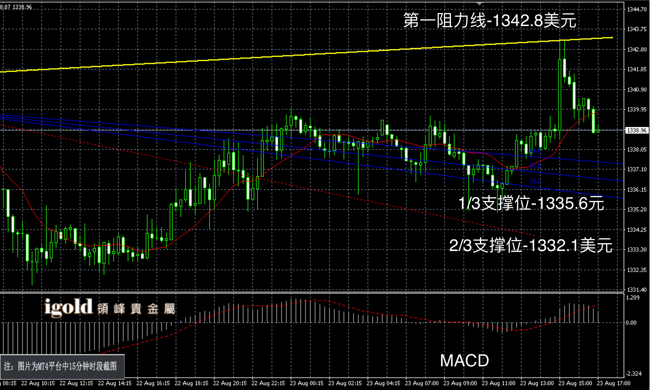 领峰贵金属 23-08-2016 晚评 午后如期反弹 高位一度突破