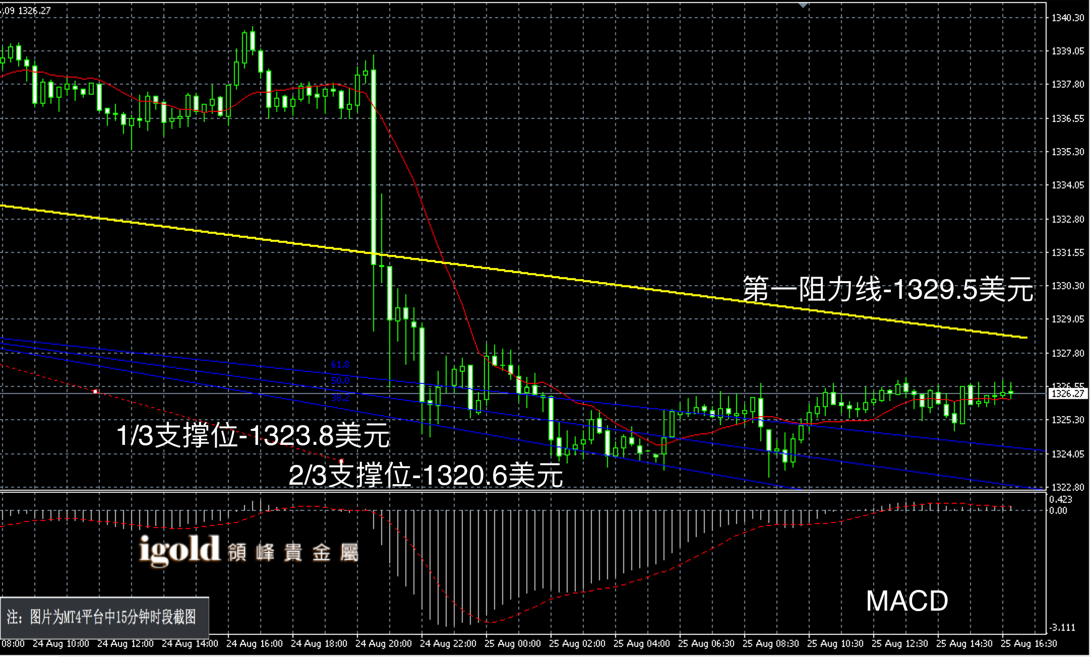领峰贵金属25-08-2016 晚评 欧盘如期盘整 晚上弱势偏空