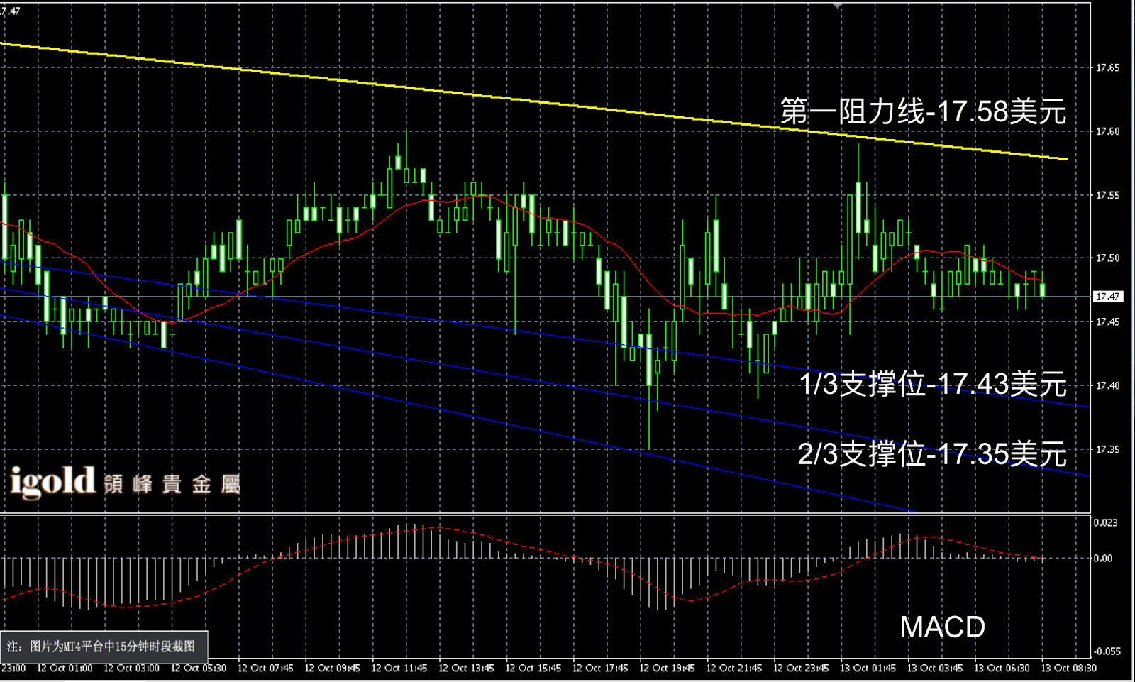白银阴阳烛录得柱体较短,末端处于红色日均线中位,短线MACD显示呈中性,白银价格上午或在17.5美元附近持稳,高低多空扩大信号可分别参考17.56和17.42美元附近。