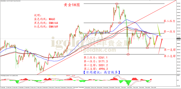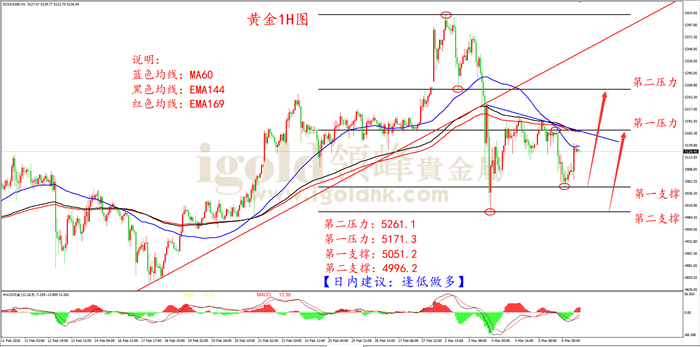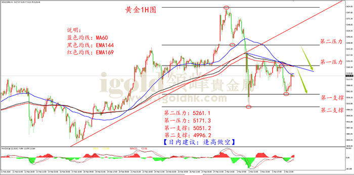 具体点位上,目前黄金上方第一压力5171.3,第二压力5261.1,下方第一支撑5051.2,第二支撑4996.2。非农数据时,投资者可根据数据公布的利多利空情况,结合支撑和压力位的破位情况,灵活选择方案对应操作。但由于非农数据具有高度不确定性,黄金近期的波动幅度又足够大,故短线上黄金也同时存在多种可能性,因此投资者也需要提前做好各种可能走势的技术分析,以及面对数据的不同结果,应该采取的各种应对策略,以做到有备无患。接下来本文将着眼于技术分析,根据数据结果的不同,向投资者提供多种预判性操作建议,以供参考。
